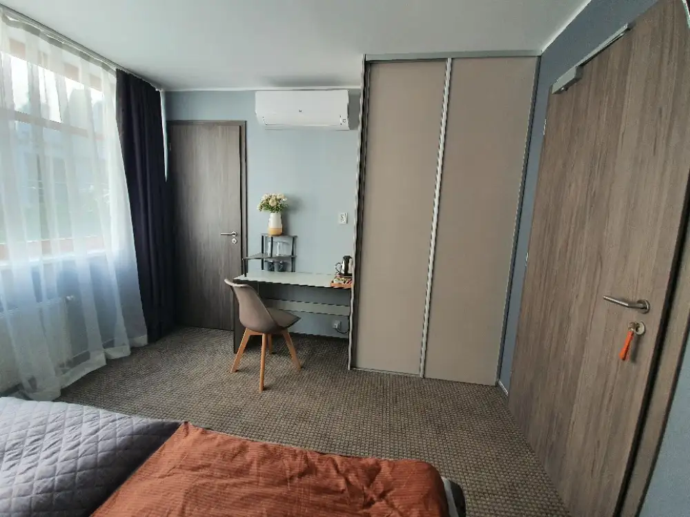 Malá ložnice nevylučuje dobrý úložný prostor – ale vyžaduje přesnější plánování. Skříň od stěny ke stěně a od podlahy ke stropu je první pravidlo: každý centimetr se počítá. Posuvné dveře jsou v malé ložnici téměř nutností – otevíravé by blokovaly průchod a omezovaly pohyb. Zrcadlové panely na dveřích vizuálně prostor zdvojnásobí.
